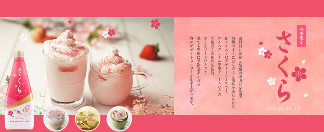 桜花と桜葉の塩漬けを入れることで、桜餅のようにほんのりと塩味が感じられる和テイストのデザートソースとなっています。&nb -